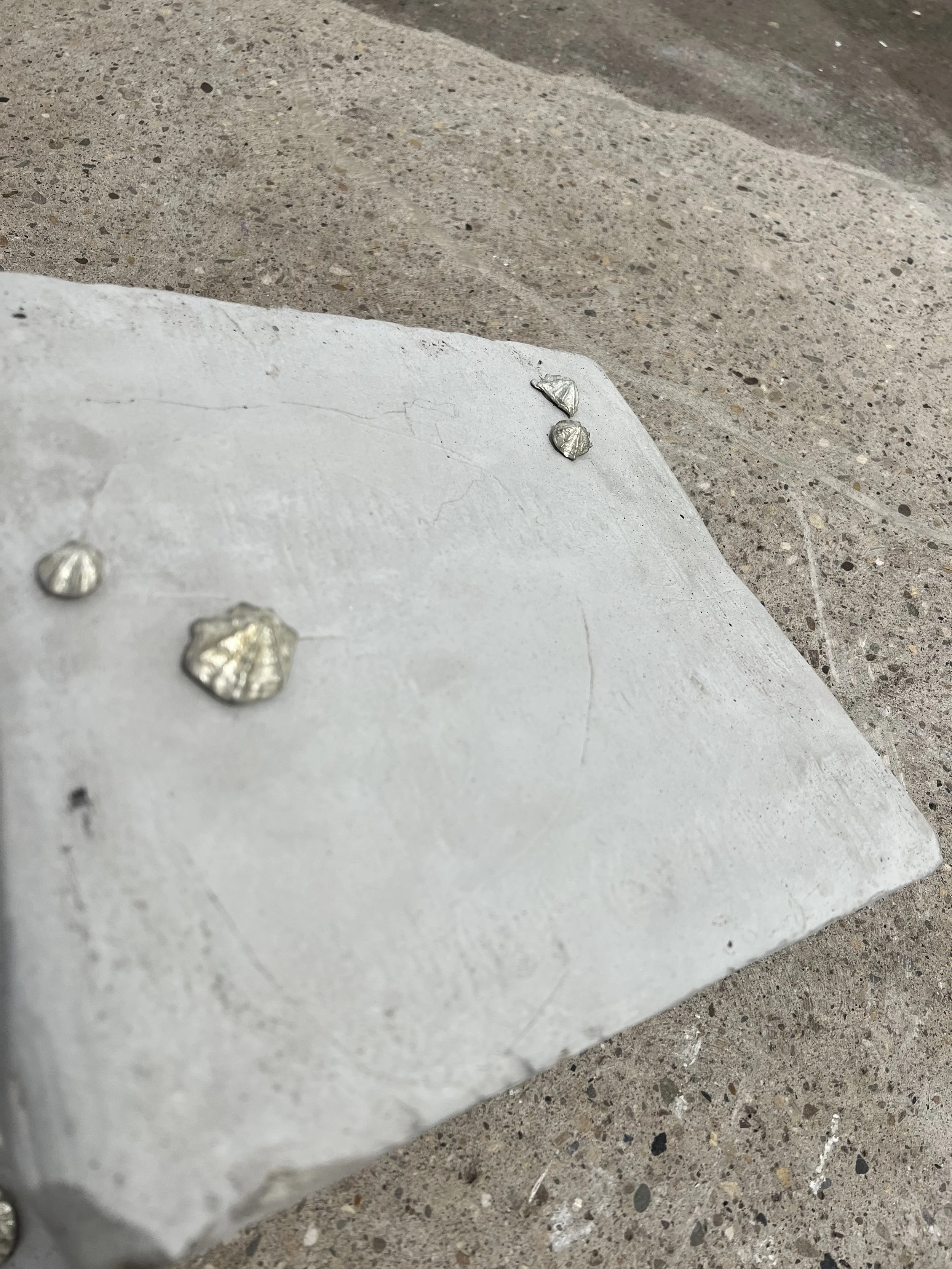 Let’s go outside (let’s go outside), In the moonshine’ by Will Hughes 2021 Sand, Cement, Olive soap Title Taken from ‘Outside’ (2006) by George Michael